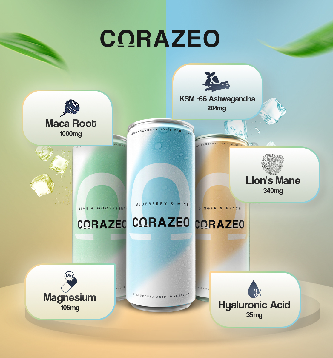 CORAZEO blends Lion’s Mane, Magnesium, and KSM-66 Ashwagandha to support clarity, calm, and real focus, without sugar or fake hype.
